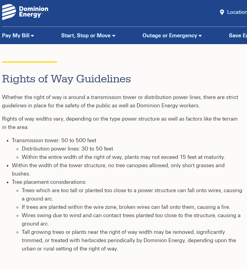 the Company’s Facilities. (Source: https://cdn-dominionenergy-prd-001.azureedge.net/-/media/content/safety/rights-of-way-usage-and-safety/pdfs/global/guidelines-for-electric-transmission-rights-of-way-easements-va-nc.pdf )